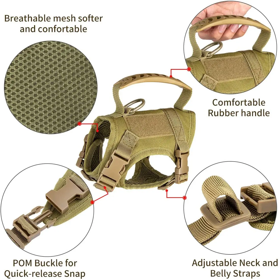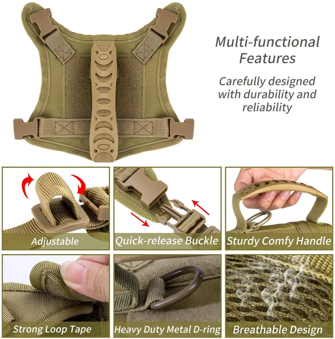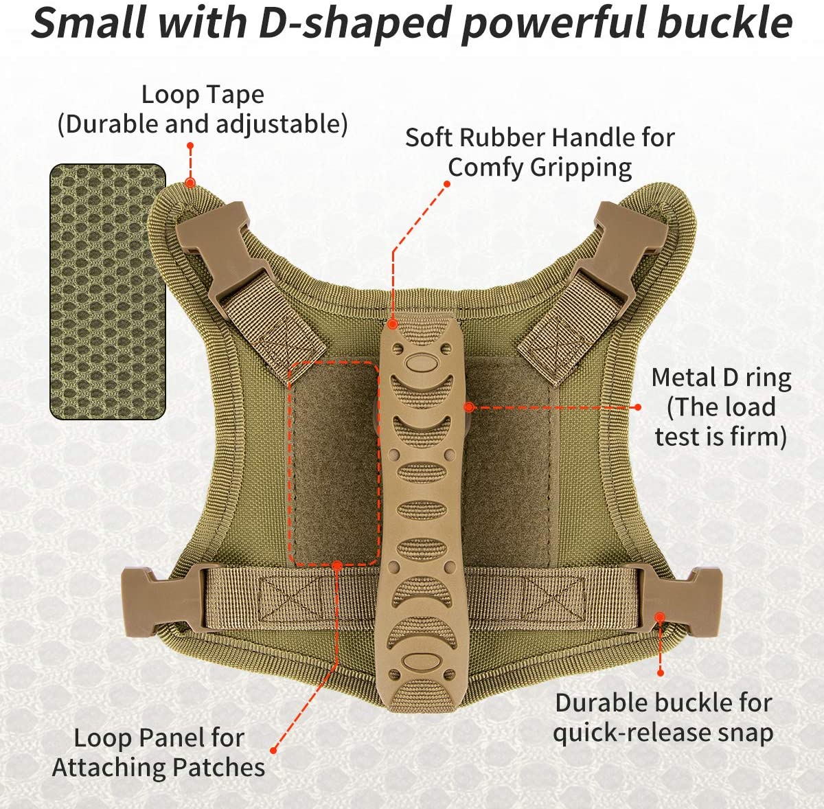 3. Diseño de mango para agarrar directamente a tu mascota en situaciones difíciles. Anillo D de metal fuerte en la parte posterior para fijación de correa.