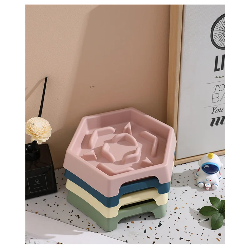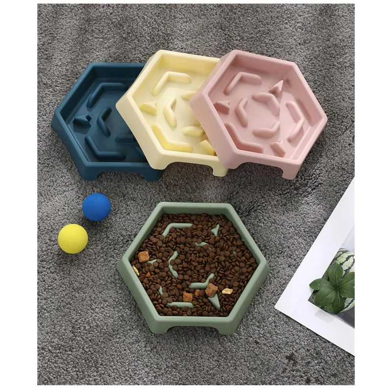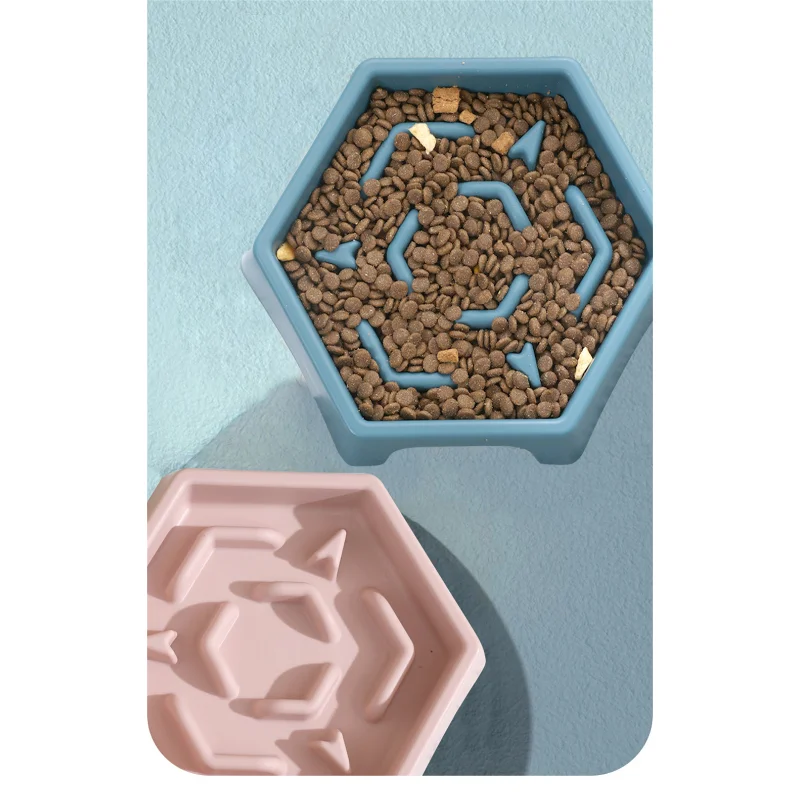 Plato de alimentación para cachorros, cuenco de comida lenta para mascotas, cuenco más lento a prueba de choques, cuencos de plástico antideslizantes para arroz para perros, alimentador de comida hexagonal